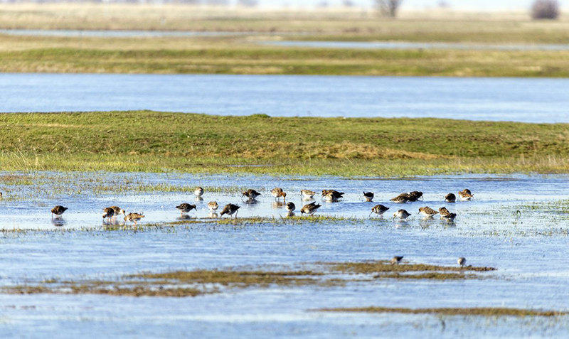 A téli csapadéknak köszönhetően még mindig jelentős a vízmennyiség a Körös-Maros Nemzeti Park Kardoskúti Fehértó részterületén. A víz tömegesen vonzza a táplálék után kutató madarakat.