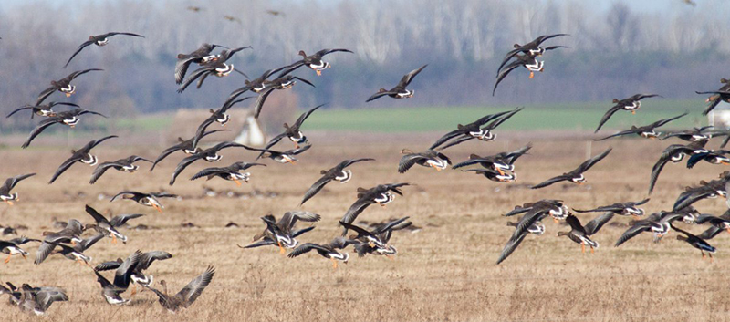 Az elmúlt napokban mintegy ötezer vadludat számoltunk itt össze. Döntő többségük nagy lilik, de szép számmal vannak köztük nyári ludak is. Valószínű, hogy van bizonyos átmozgás a kardoskúti Fehér-tó és a Nagy-Zsombék között, így ugyanazok a madarak mindkét területet látogatják.