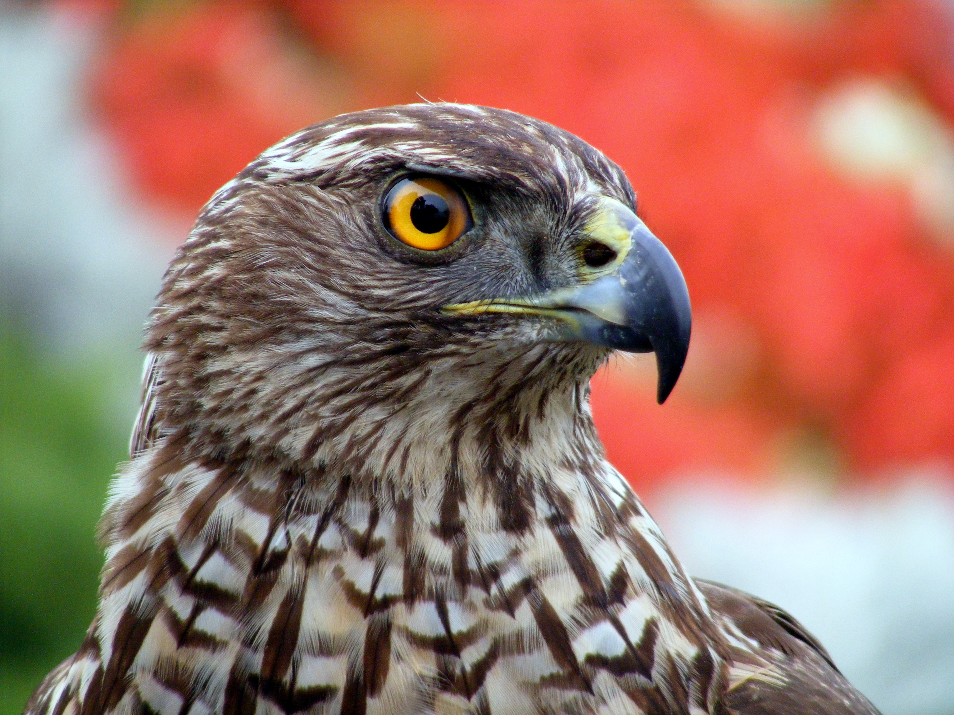 A ráckevei Árpád-híd lábánál vettem észre ezt a fenséges madarat. A gazdája kezén ült és figyelt.