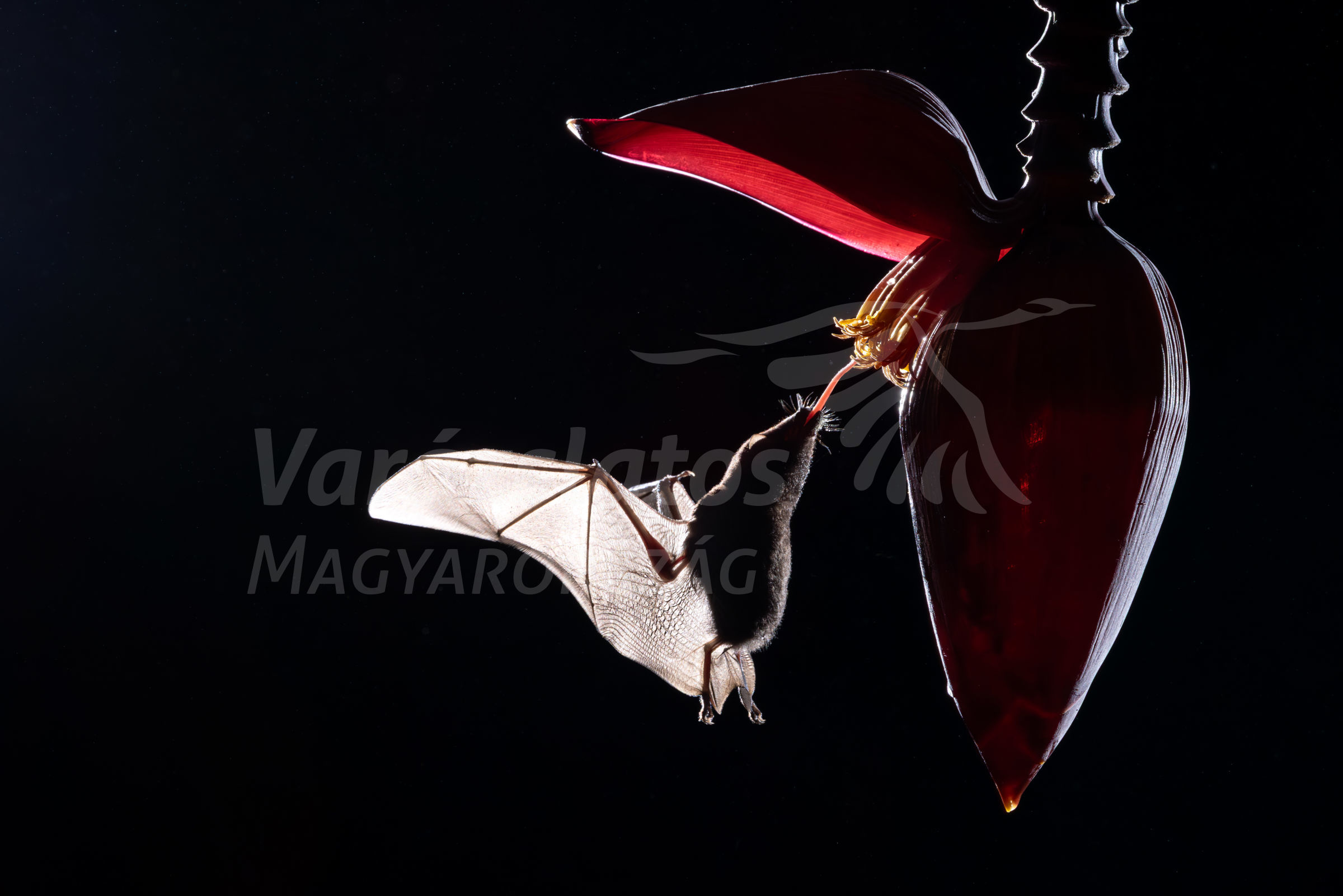 Egy apró nektárdenevér könnyed mozdulattal gyűjti a táplálékát a virágból.